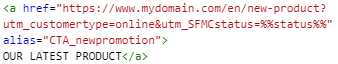 By default, as we saw at the beginning of this post, with the GA360 integration there is a default list of UTM parameters that will be automatically appended in the links of the email when sending it from Journey Builder. But, in case we need to add more UTMs, we need to do it manually in the HTML of the email, like in the example below.